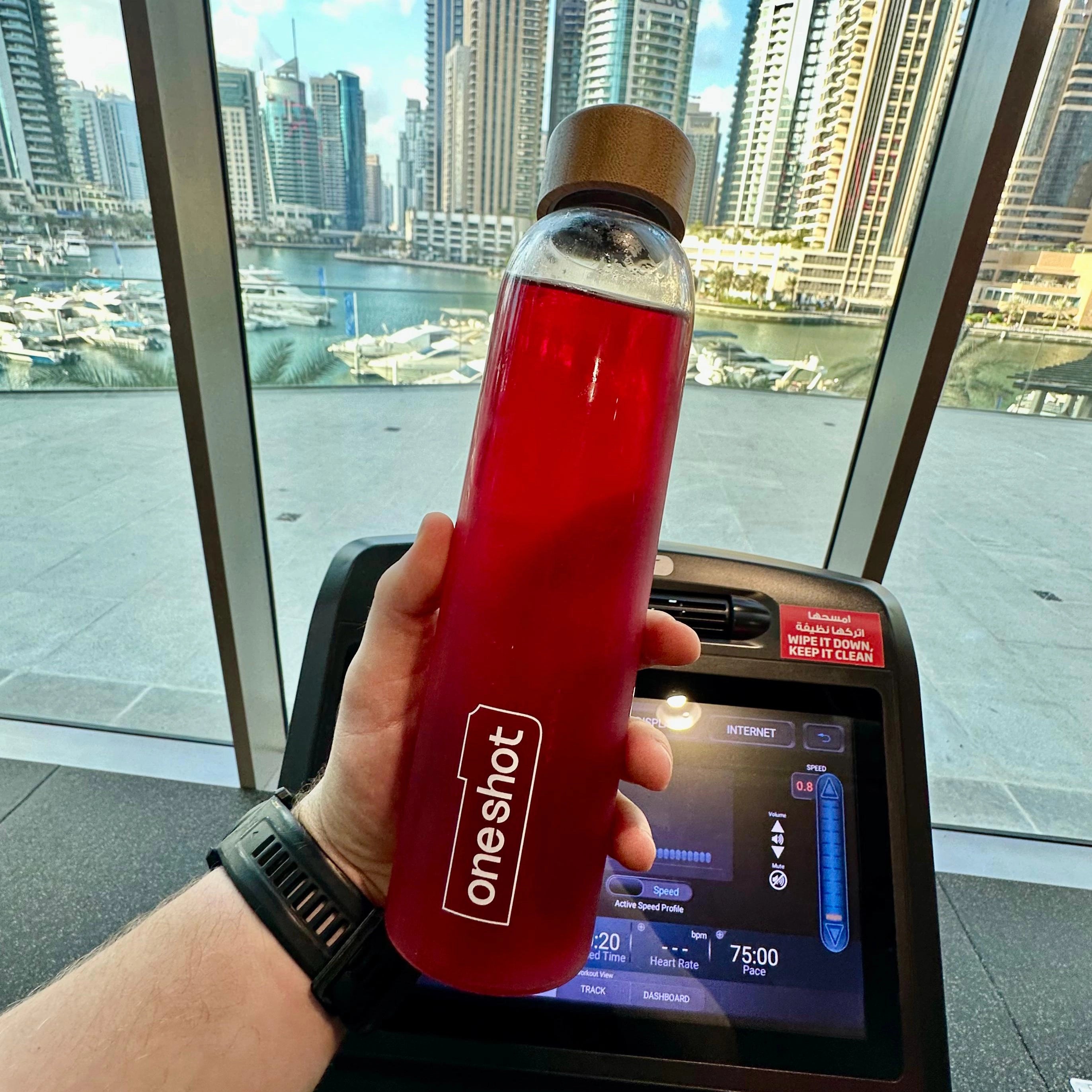 I love it! The cap stays put and is not fidgety - plus it keeps my oneshot ice cold throughout my session. It's always with me at the gym.
