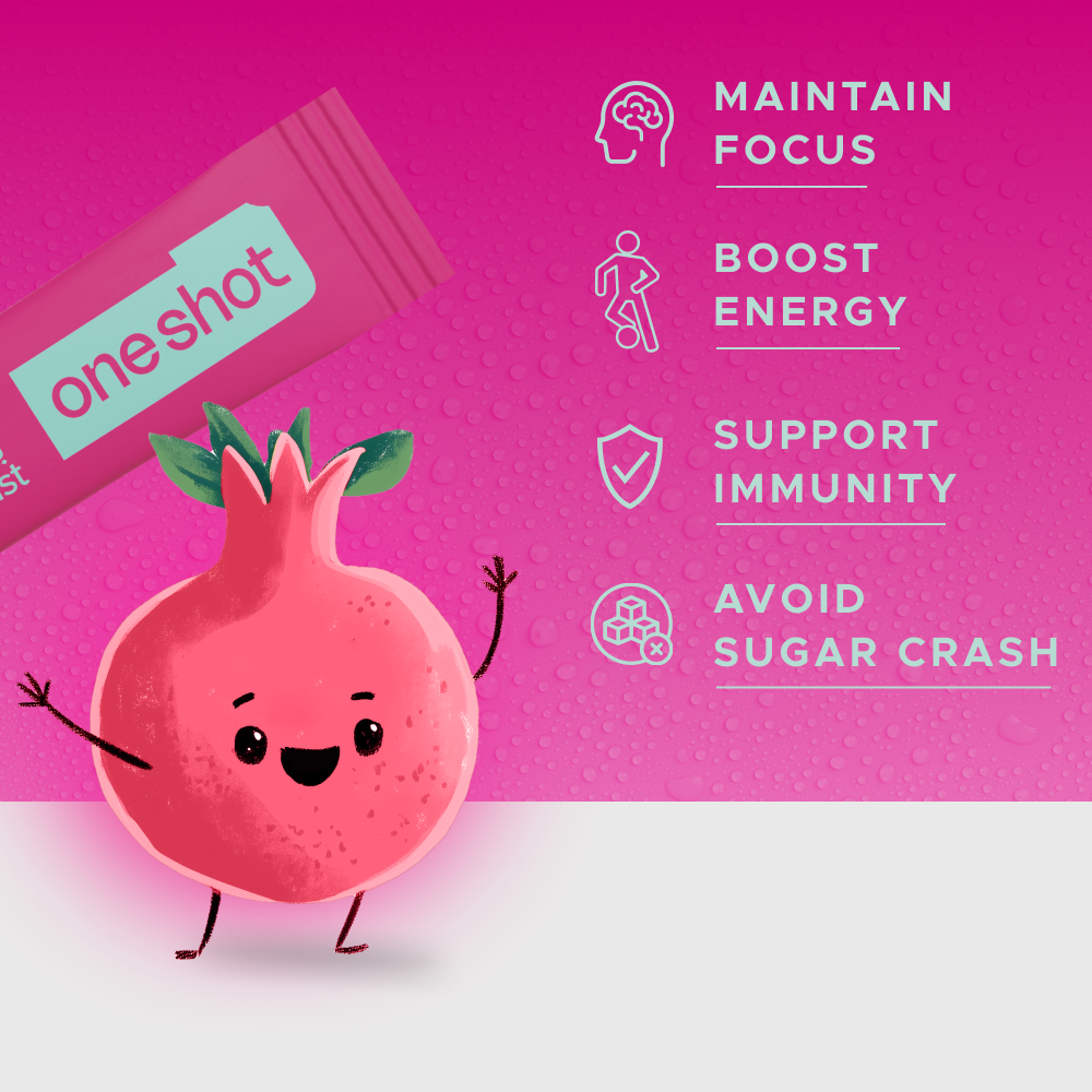 oneshot is great during or after active play, sports, or a long day at school. It’s also perfect for hot days when extra hydration is needed. For young athletes, it helps replace electrolytes lost through sweat, keeping them energized and ready to play.