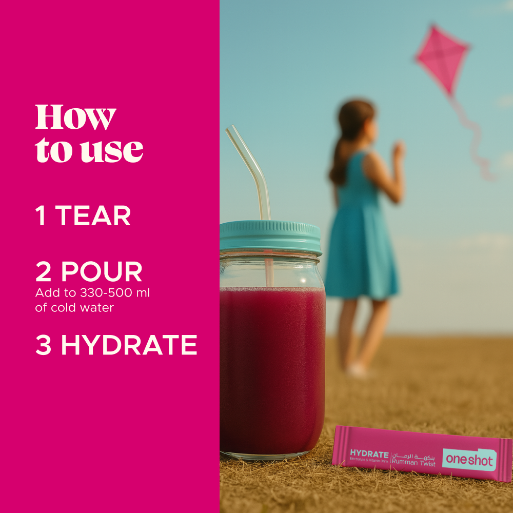 Hydration helps kids stay energized, focused, and healthy. When kids play, run, or even study for long hours, they lose water and electrolytes. oneshot replaces what they lose, helping them feel refreshed and ready for more fun.