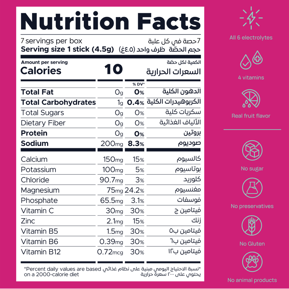 Each oneshot stick delivers all 6 essential electrolytes and includes a blend of vitamins and minerals that will boost your kids' energy, focus and performance in both school and sports.