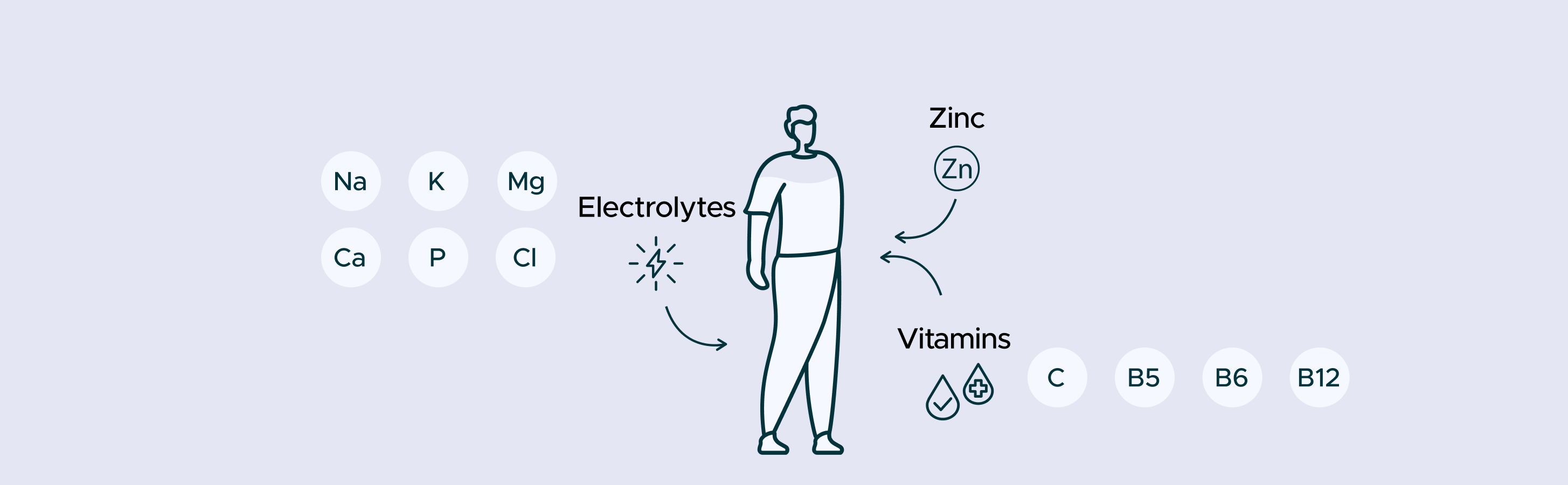 ✅ All 6 electrolytes + 4 vitamins + zinc.