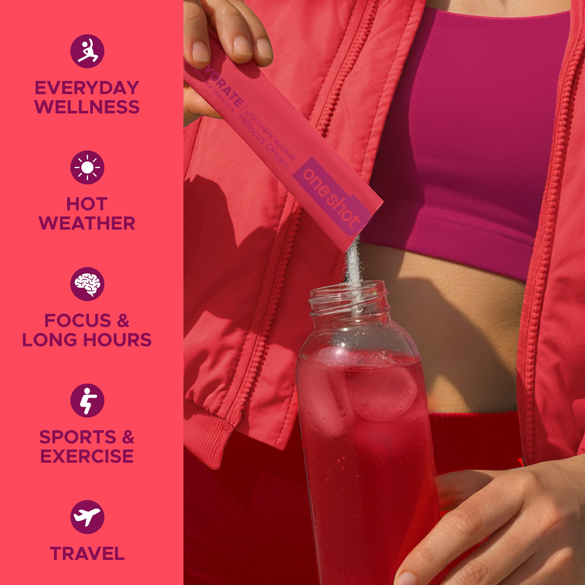 oneshot is perfect anytime you need hydration or a boost, such as during or after workouts, while fasting, traveling, or recovering from dehydration. It’s also great for staying energized on busy days.