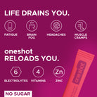 Drinking water is essential, but it doesn’t replenish electrolytes lost through sweating, exercise, or daily activities. oneshot complements your water intake by restoring vital electrolytes and adding vitamins like B5, B6, B12, and C to optimize hydration and energy.
