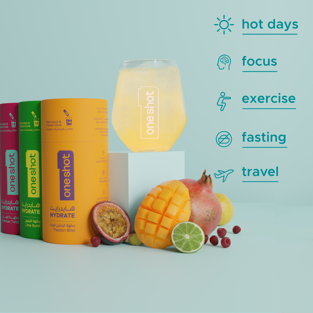 oneshot is perfect anytime you need hydration or a boost, such as during or after workouts, while fasting, traveling, or recovering from dehydration. It’s also great for staying energized on busy days.